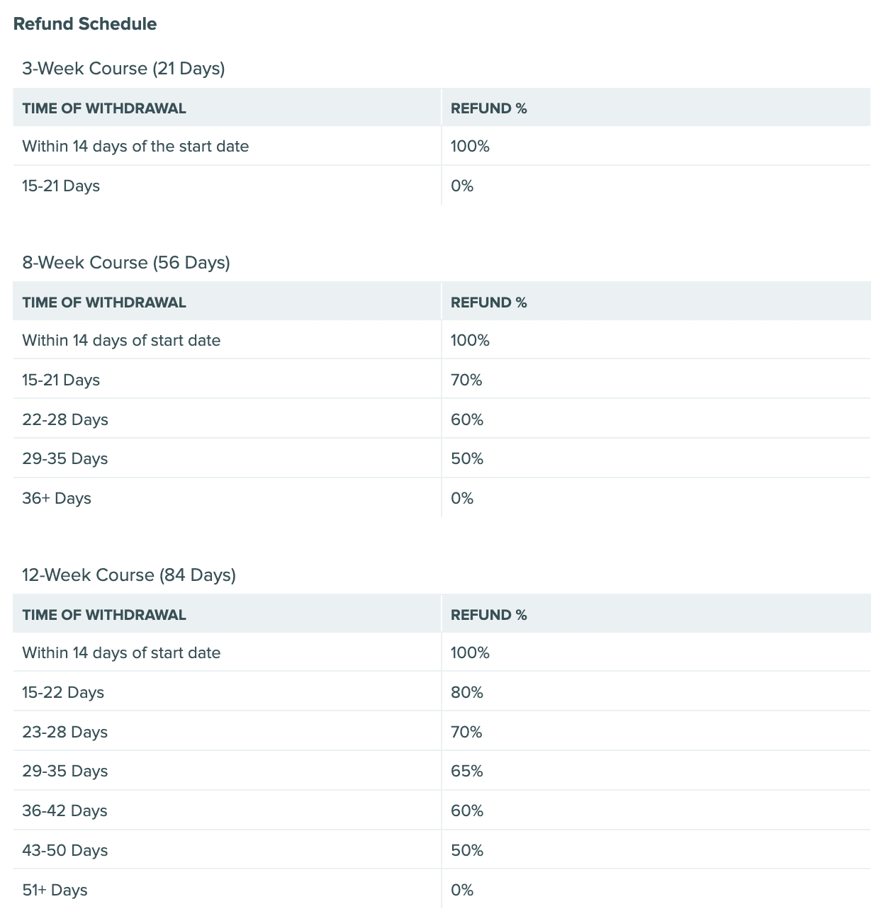 Refund Schedule